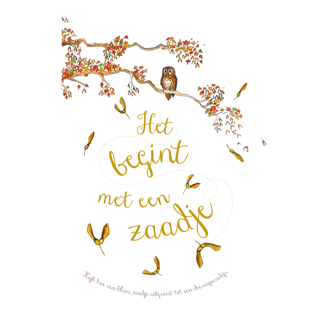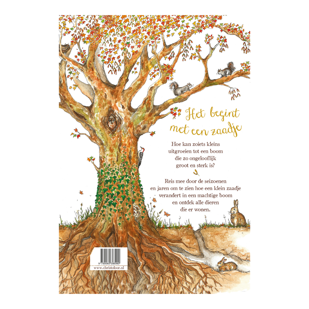 Hoe is het mogelijk dat een klein zaadje het begin van zo'n grote boom kan zijn? Reis mee door de seizoenen en de jaren en zie hoe een zaadje eerst verandert in een klein boompje, en uiteindelijk in een machtige boom met takken en wortels die de hele pagina vullen. Gaandeweg komen er steeds meer dieren in en om de boom wonen, zoals eekhoorntjes, konijntjes, vlinders en uilen.